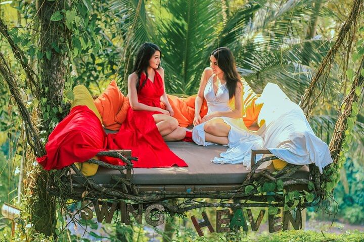 Marvel at the natural formations, caves, and Ubud landscape as you navigate the gentle current of the river, providing an intimate connection with the magical ambiance of Ubud. For those seeking a seamless adventure, the optional private hotel pick-up and drop-off ensures a comfortable return after your tubing expedition. However, the excitement doesn't end there – consider upgrading your experience with the opportunity to combine river tubing with full access to the renowned Ubud Jungle Swing. Feel the adrenaline rush as you soar high above the breathtaking landscapes. Access to Bali swing includes single swing, tandem swing, bed swing, libra swing, and various Instagram-worthy photo spots.